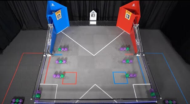 Robots and human players work together to score purple and green artifacts into their alliance’s goal, then build a pattern on their ramp based on a randomly-selected motif shown on the obelisk. The match starts with a 30-second autonomous period where robots decode the motif and score, then shifts to 2 minutes of driver control where teams collect and launch artifacts. At the end, alliances try to return their robots to base, and if they completed the correct pattern, they earn extra points.